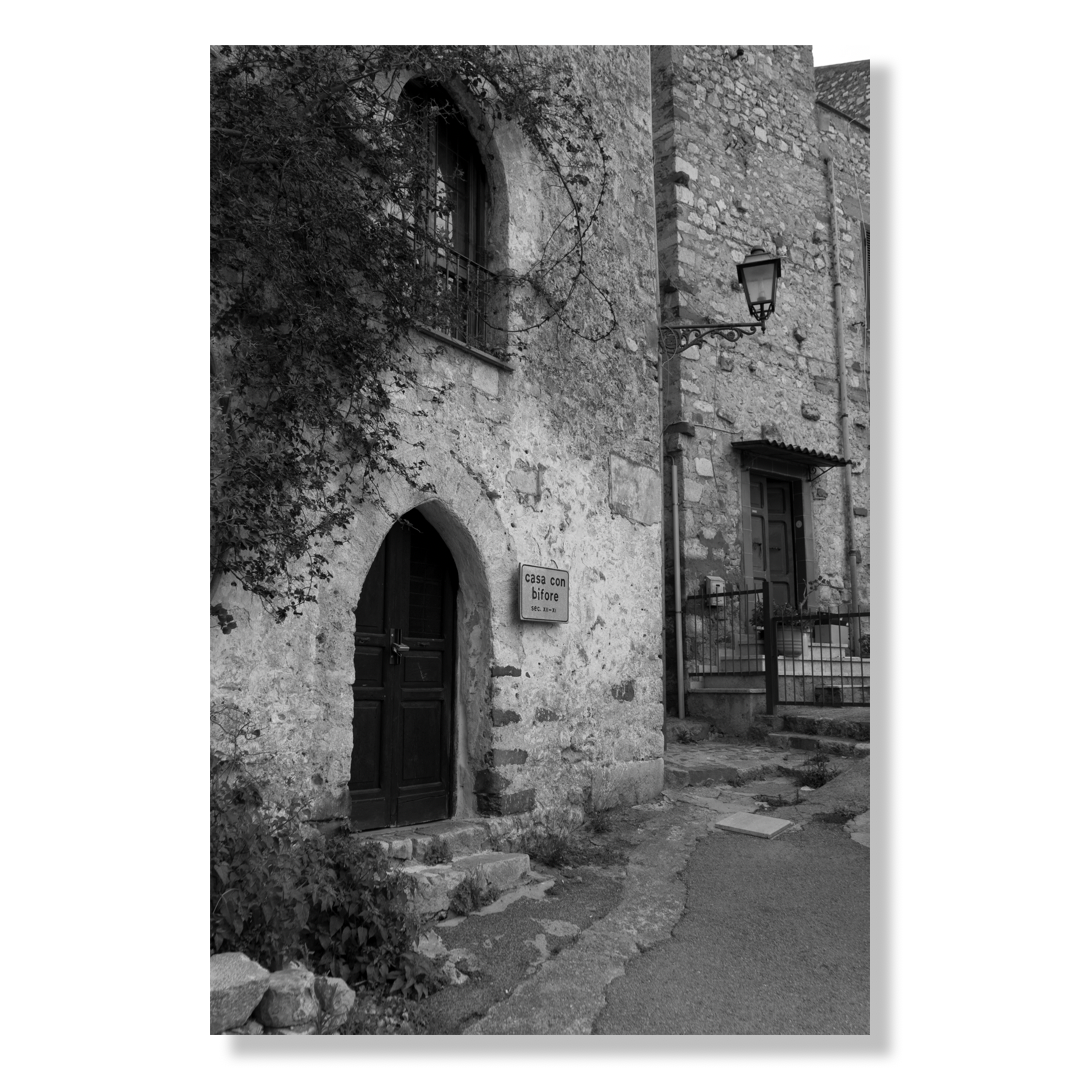 A quiet corner shaped by time. Weathered stone walls, arched doorways, and soft shadows tell a story of everyday life lived slowly. The photograph captures the understated beauty of Italian architecture.