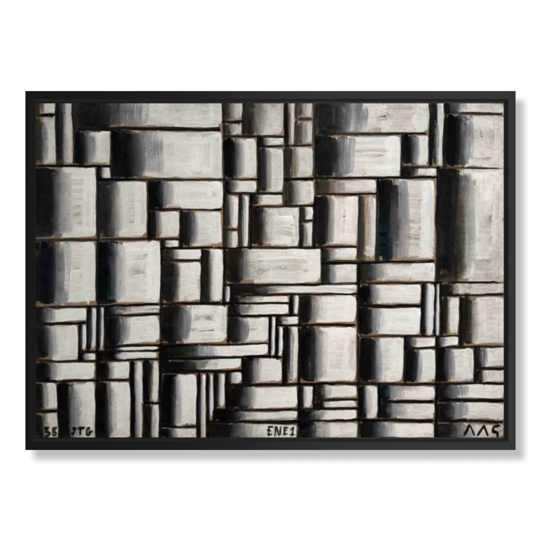 Wydruk na płótnie, zamontowany w czarnej ramie „floating” – efekt czysty, graficzny. Klasyczny modernizm spotyka współczesną estetykę – mocne wizualne statement o precyzji i charakterze.